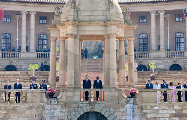 会谈前,拉马福萨在总统府广场为习近平举行欢迎仪式。